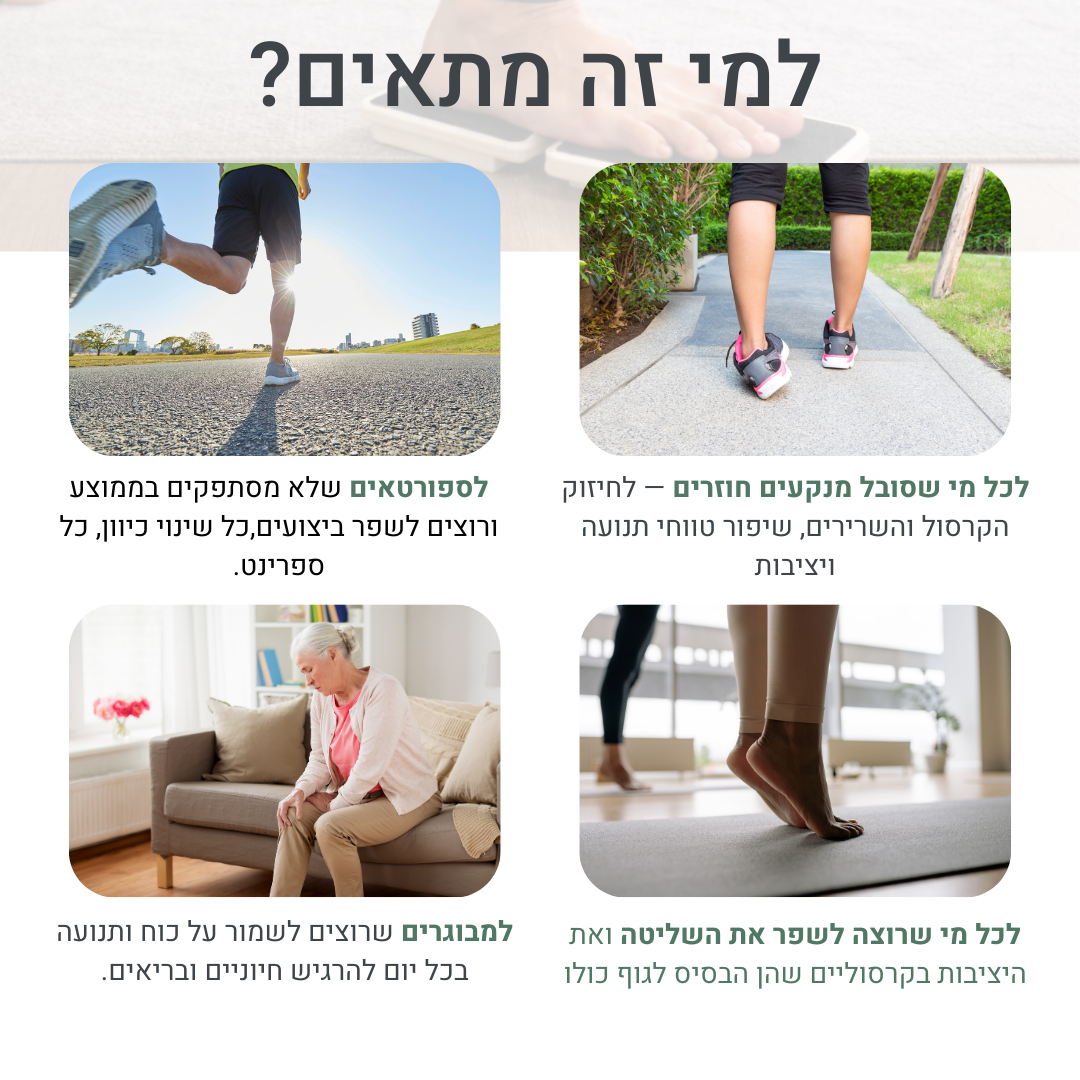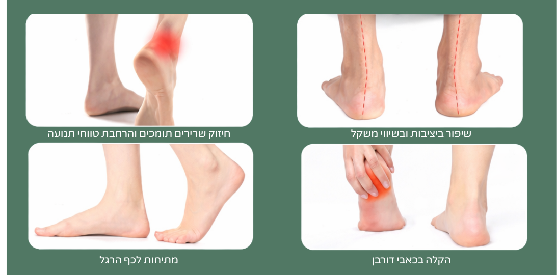 ✔️ מפעיל את כל שרירי הרגל – קדמיים, אחוריים ושרירי הקרסול